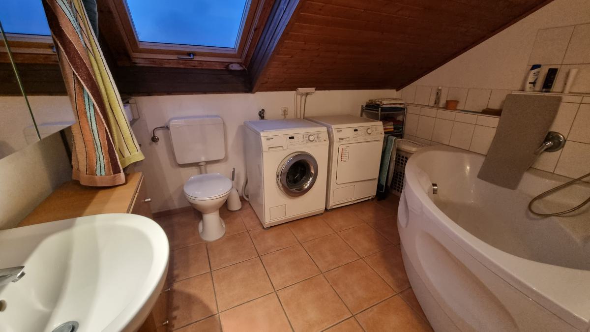 ***Tageslicht helles Bad mit Eckbadewanne, WC, Waschtisch und Platz für Waschmaschine und Trockner