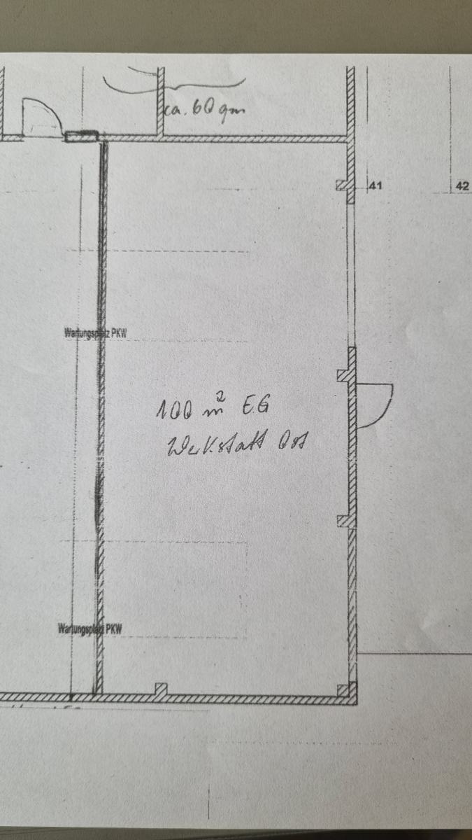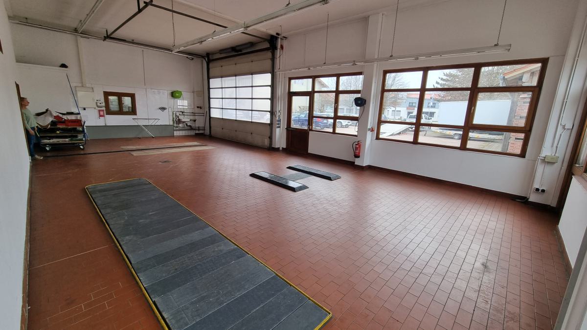 Die Werkstattfläche bietet großzügige Räumlichkeiten, die ideal für handwerkliche Tätigkeiten geeignet ist. Die großen Fenster sorgen für ausreichend Tageslicht und eine angenehme Arbeitsatmosphäre.